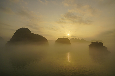 「快點起床!窗外的風景十分漂亮!」我被內子急促的呼喚聲吵醒,只是看了窗外一眼,我馬上睡意全消,還沒有梳洗,我已經把全部攝影器材預備好。內子和我參加了一個兩天一夜越南下龍灣的郵輪旅程,觀賞了一整天下龍灣風光之後,雖然已經疲累不堪,但是感到十分滿足,然而,我意想不到的是,更加優美的景色竟然會出現在早晨。