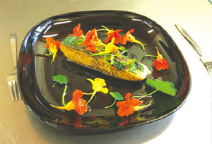 將金蓮花搭配三文魚,令原本味道平凡的香煎三文魚,增添了豐富的層次感。