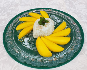 芒果椰汁糯米飯是泰國菜中最受歡迎的甜品之一,熱食或凍食皆具特色,材料和做法並不複雜,飯後甜品來一道芒果椰汁糯米飯,可為完美的一餐寫上滿足二字。
