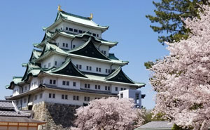 名古屋城在1612年由德川家康所建,以此作為對抗敵人的第一道防線以保障地方的商業發展。1891年大地震時倒塌,重建後,在第二次世界大戰1945年被燒毀,1959年再次重建。名古屋城是日本三大名城之一,又名金鯱城,在城頂兩尖角處可以看到一對金色的鯱,是這城的代表象徵. 城園中種植了二千多棵櫻花樹,春天花開的日子吸引了無數的當地人與遊客來賞花。城堡已是一博物館,展覽當時家族的威煌歷史。