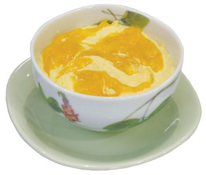 這個蛋糕的特色,就是不用開爐火,簡單易做、美味可口。今次將製成的芒果芝士蛋糕,分別裝入小容器內,供客時更為方便。
