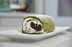2.篩好麵粉、發粉及綠茶粉後,放入上述混合物中,拌勻。