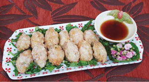 琵琶豆腐一般都是用魚肉加上豆腐作主要材料,搓成球狀,放在湯匙上蒸熟,因為形狀像琵琶,所以取其名琵琶豆腐。