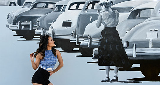 有些城市明白到與人分享地標和公共藝術是雙贏的途徑,所謂公共藝術,是指在戶外的藝術作品,例如壁畫和露天的雕塑。上個星期我參加了一個攝影會舉辦的活動,我們來到接近聖地牙哥的海邊鎮(Oceanside)拍攝壁畫,海邊鎮總共有二十六幅壁畫,限於時間,當天我們只是流連在其中三幅。當模特兒在一幅壁畫前擺甫士的時候,突然來了一輛警車,後來我們轉到了另一幅壁畫前,那輛警車也跟著駛過來,我不禁聯想起六年前在彼得森汽車博物館和布羅德博物館的經歷,心想:「是不是市政府要求我們有準許證才可以拍照呢?」我正在盤算怎樣回答的時候,警車已經離開了。整個下午我們盡情拍攝,其中一幅壁畫是在一間酒店的側面,另一幅是在一間汽車修理廠的牆壁上,酒店和汽車修理廠的工作人員都看見我們,但並沒有加以阻撓。