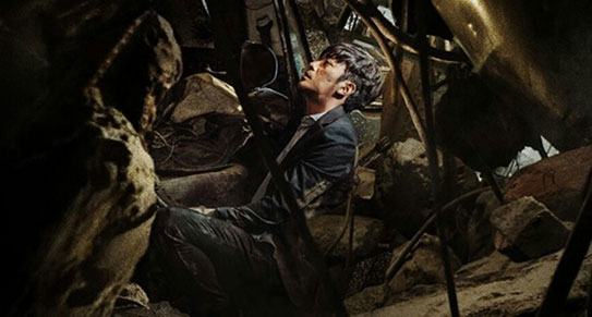 車子漸漸駛向一條竣工不足月餘,幾乎沒有來往車輛的隧道。突然間,李正洙從後視鏡裡看到隧道正開裂、崩塌,他加速向前,垮塌追上,燈光全熄!車燈是僅有的亮光,黑洞洞的隧道似乎無限漫長。他極力加速,塌方跟進、超越!終於,一片漆黑……