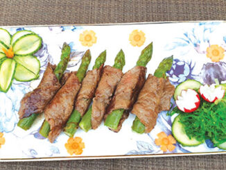 蘆筍含有豐富營養,牛肉也有豐富蛋白質、鐵質、鋅質、多種維生素。在做好的牛肉捲上淋用不同醬汁伴食,也特顯各種不同的風味。
