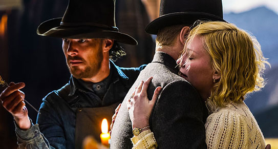 有一次兄弟倆帶著一群受僱的牛仔,到鄰近的市場辦事,完事後走進一家餐館用餐。菲力極盡能事地羞辱女廚師羅絲和她年少的兒子彼得,牛仔們也跟著起哄。酒足飯飽之餘,菲力帶著同夥走人,但良善的喬治在買單時,卻聽見羅絲在廚房飲泣,對她非常同情。