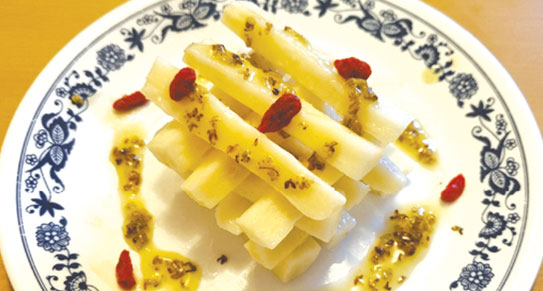 食譜用上桂花作為甜品,使淮山增添芳香醒脾,美味開胃