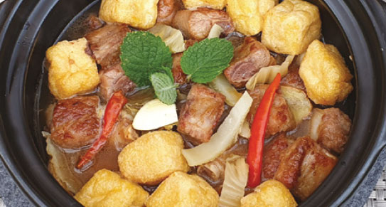排骨酸菜豆腐煲是一道開胃小菜,加上油豆腐吸收汁液後更加美味,可能要考慮下米煮飯時增加米量啊!