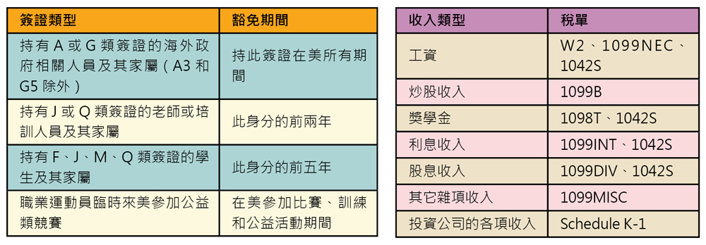 這些豁免不算在美國的日子,是用來計算你是否在美國待夠183天,並當年是以何種身分(如Nonresident Alien or Resident Alien)來報稅的。