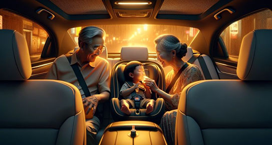孫子出生前,媳婦總是關懷備至地詢問我是否要坐前座,那是出於對長輩的禮節,我們都回應說:「就按美國方式,年輕人坐前面。」孫子出生後,我們在後座照顧孫子就成了自然不過的安排。