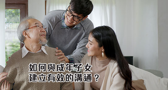 父母與成人子女需要一起向前,一起成長,還要以真誠相待。很多年老父母會隱瞞自己的健康狀況或遇到的問題,因為怕子女不理解或擔憂。父母需要向子女坦誠,因為子女有責任照顧父母,協助雙親解決年老時遇到的困難,讓子女能盡上他們的責任,減低以後的悔疚。