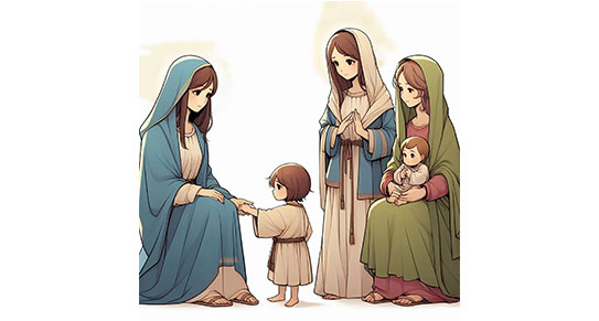 耶穌12歲那年逾越節,馬利亞和約瑟帶他到耶路撒冷,沒想到耶穌獨自留在聖殿裡,沒有告知父母。馬利亞尋找三天才找到他,然而,她說:「我兒啊,為什麼向我們這樣行呢?看哪,你父親和我傷心來找你!」耶穌說:「為什麼找我呢?豈不知我應當以我父的事為念嗎?」(《路加福音》二章48、49節) 耶穌的回答,儘管馬利亞聽不明白,卻照樣謙卑地順從神,帶耶穌回家,使「耶穌的智慧和身量,並神和人喜愛他的心,都一齊增長。」