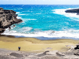 離開觀光熱點,走向大島 (Big Island) 最南端,我與妹妹來到了一個名為綠沙灘 (Green Sand Beach) 的地方,當地人稱之為Papakōlea。這裡遠離人群,宛如地球邊界的秘境,是我此生難忘的一段旅程。