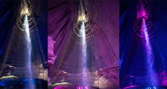 近來,我造訪了數座地下洞穴,其中包括世界上最長的洞穴系統,那就是美國肯塔基州的猛獁洞國家公園 (Mammoth Cave National Park)。猛獁洞綿延無盡,其岩壁與地貌氣勢宏偉,然而,也許是因為看得多了,許多洞穴的鐘乳、石筍、流石牆,在造型與質感上相似之處甚多,少了初見時的驚嘆。直到踏入田納西州查塔努加 (Chattanooga) 的露比瀑布 (Ruby Falls),我才重新被洞穴世界震懾,因為這裡不僅有幽深的岩室,更藏著一條垂落於黑暗深處的地下瀑布,銀白水柱自天際裂縫傾瀉而下,彷彿星河墜入凡間。