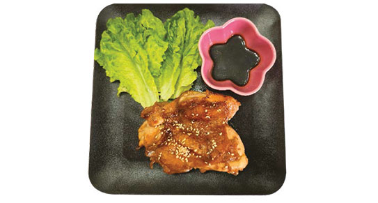 4. 可將雞扒切件,將鍋內的照燒汁直接淋在雞扒上,用生菜包裹伴食。