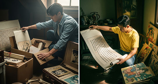 我想首先將所有作品進行專業數位化保存,然後,保留一些具有特殊意義的作品,希望孩子們因曾在家裡見過它們,而能生出些許連繫感。相信下一代漸漸年長,也許會開始思考自己的文化根源。到那時,這些被保存下來的藝術品或許能成為他們探索家族歷史的重要線索。因此,我決定為每件保留的作品作詳細的記錄,包括:來源、創作背景,及相關人物故事等,使之不僅是藝術品,更是蘊含深厚情感的家族遺產。這些塵封的藝術品不是單純的視覺享受,更是一個時代的見證。