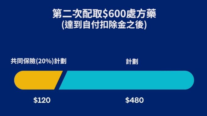 - 您要支付$120共同保險 ($600x共同保險比例20%) 計劃會支付$480