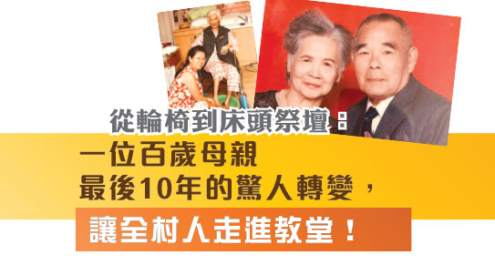我看着聽着媽媽的禱告,就想到《聖經》雅各晚年的時候,「在床頭上敬拜神。」(《創世記》四十七章31節下)。感謝神,賜給媽媽在床頭的祭壇,在神為她預備的安居之所,她活出了最美的晚年。