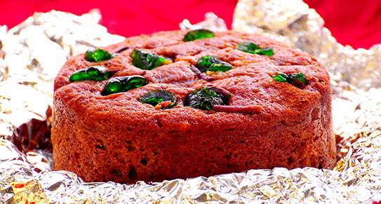 西梅乾200克,葡萄乾200克,糖漿車厘子200克,杏仁粒150克,糖漿檸檬皮50克,糖漿橙皮50克,蜜糖175毫升,朗姆酒125毫升,橙汁2個橙分量,肉桂粉1茶匙,可可粉2湯匙,牛油175克 (室溫),黑砂糖175克,雞蛋3粒,麵粉150克,杏仁粉75克,發酵粉半茶匙,小蘇打半茶匙。